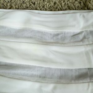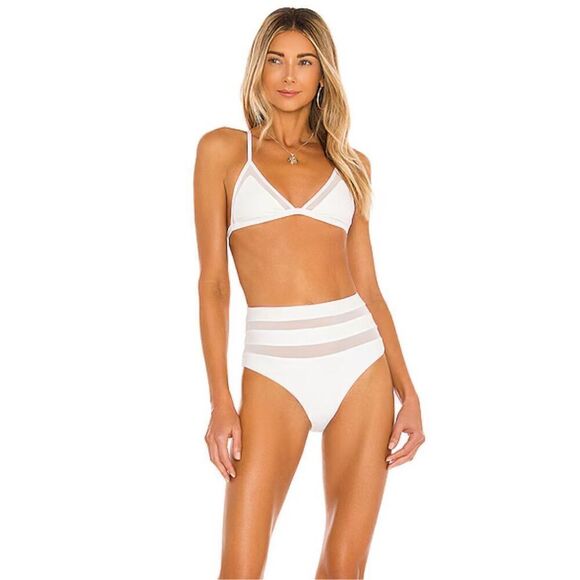 Lovers + Friends Cashel High Waist Bikini Bottom in White Sheer Mesh Stripes Cheeky Swimwear M