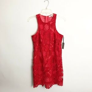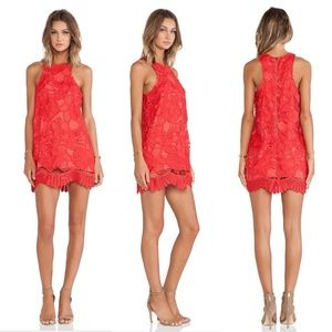 Lovers + Friends Caspian Mini Dress Size S Coral Lace Crochet Halterneck NWT