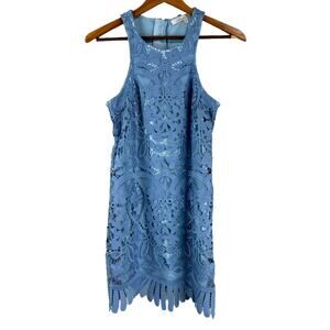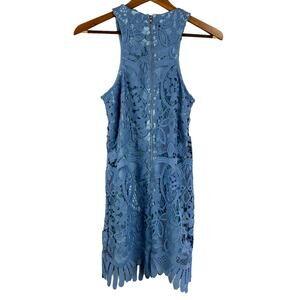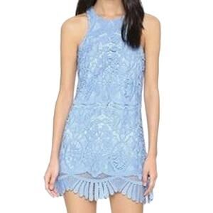 Lovers + Friends Caspian Shift Lace Blue Dress Size XS EUC Floral Scalloped Hem