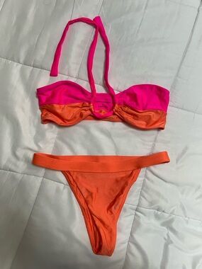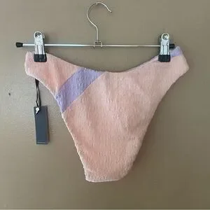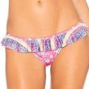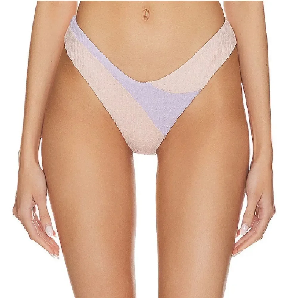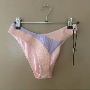 Lovers + Friends Catcha Wave bikini bottom high cut pink blue cheeky Revolve XS
