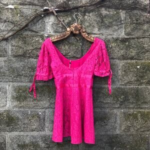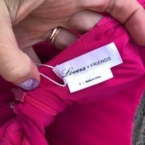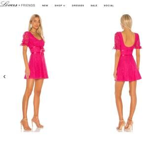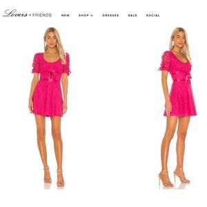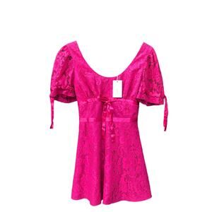 Lovers + Friends Cloud Nine Lace Scoop Back Puff Sleeve Mini Dress Pink S NWT
