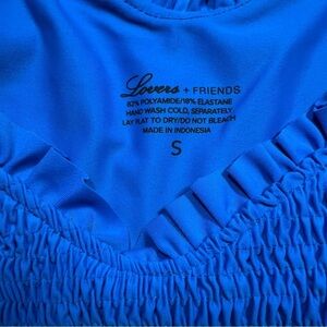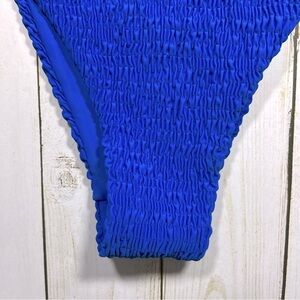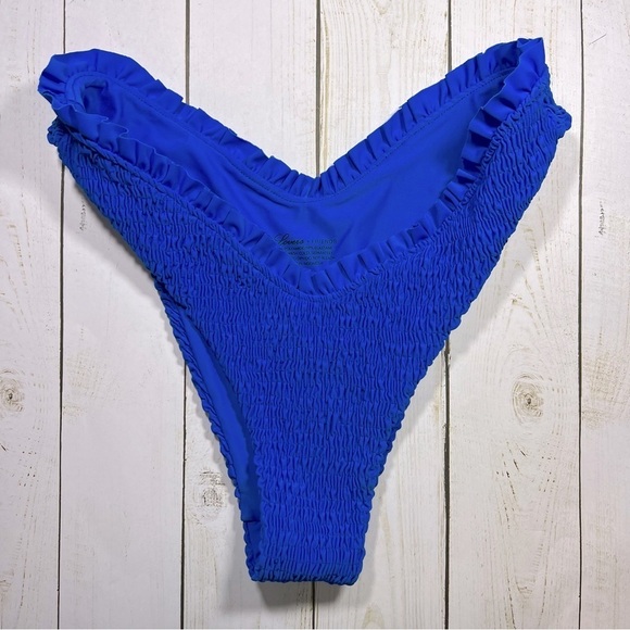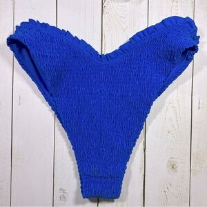 NWOT Lovers + Friends Cobalt Blue High Waist Ruffle Trim Cheeky Bikini Bottom. Size Small.