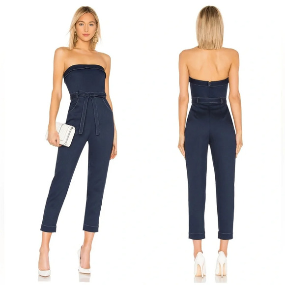Lovers + Friends Coraline Navy Belted Sleeveless Jumpsuit Size LG Women's