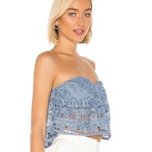 Lovers + Friends Corset Lace Crop Top in Dusty Blue Size Small
