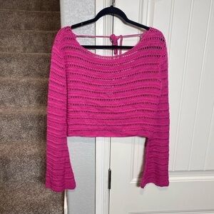 Lovers + Friends Crochet Open Back Tie Sweater pink