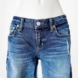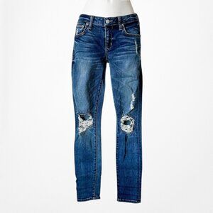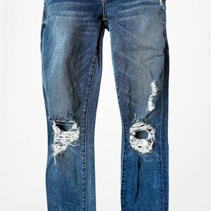 Lovers & Friends Dark Wash Denim Ripped Knee Mid Rise Skinny Jeans Size XS