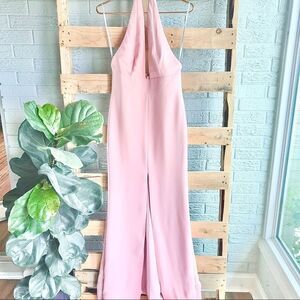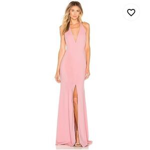 Lovers + Friends Deep V Halter Neck Slit Pink Gown