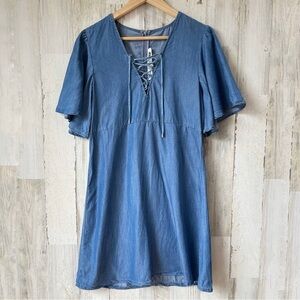 Lovers + Friends Denim Washed Ashore Flutter Sleeve Lace Up Dress Size S