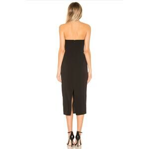 By now you're well aware that Lovers + Friends doesn't mess around when it comes to figure sculpting silhouettes. The Denise Midi Dress dons clean lines with its strapless design and a front cut out that leaves a lasting impression. Fully lined. Front cut out and back vent. Hidden back zip closure. Self: 96% poly 4% spandex. Lining: 97% poly 3% spandex. Dry clean only. New with tags.