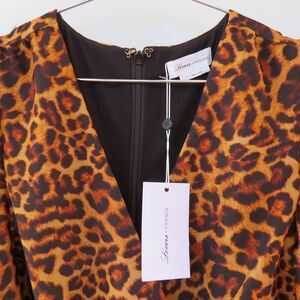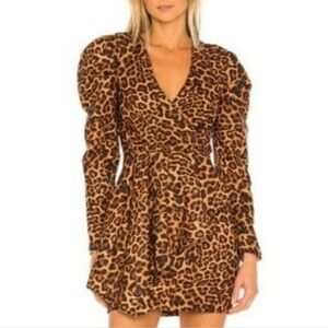Lovers + Friends Dress Womens Small New Leopard Animal Print Puff Sleeve Mini