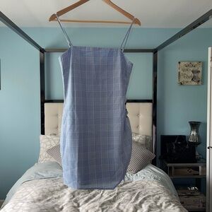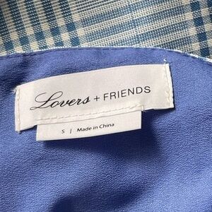 Lovers + Friends ELLIS Blue Plaid Mini Dress Side Ruched Button Detail Small