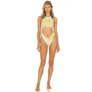 Lovers + Friends Elisa Yellow Cut Out Tie Dye One Piece Swimsuit