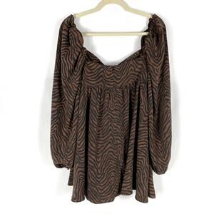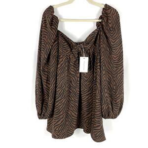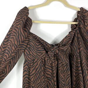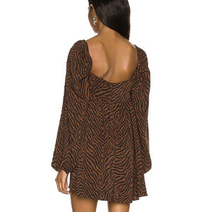 Lovers & Friends Fai Mini Dress Babydoll Tiger Print Brown Black Long Sleeve