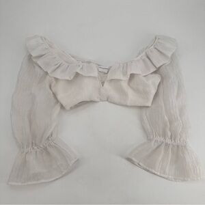 Lovers + Friends Fatima Ruffle White V Cut Crop Top Medium