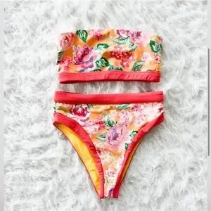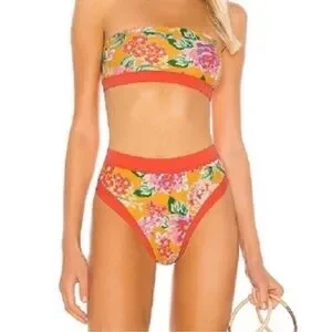 Lovers + Friends Floral Bandeau Bikini Set Size small