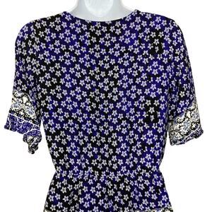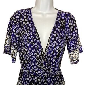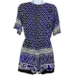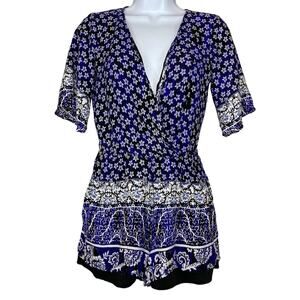 Lovers & Friends Floral Blue Surplice Isabelle Romper Pockets Flowy Size XS