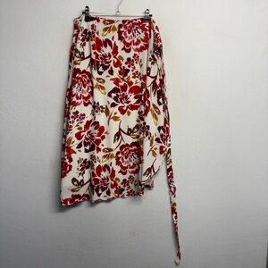 Elevate your style with this elegant floral wrap skirt. Featuring a vibrant red and cream design, it's perfect for any occasion.