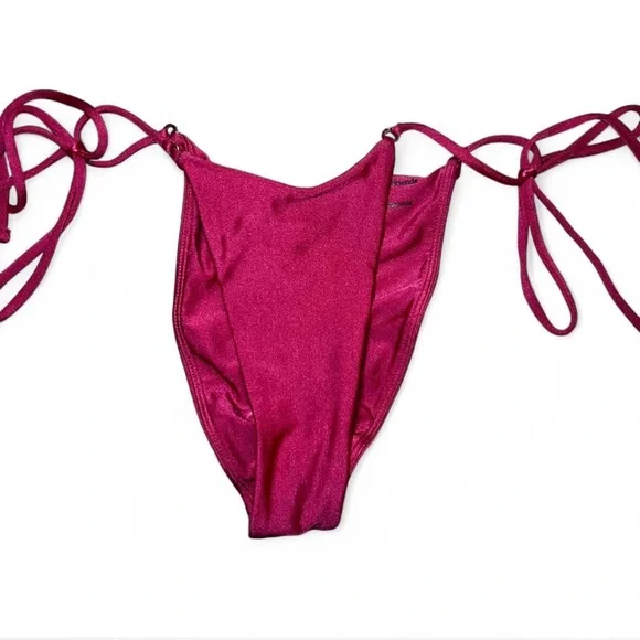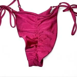 Chic bikini bottom in fuchsia. Features side ties for adjustable fit and scrunch back detail