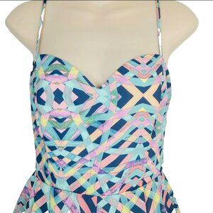 Lovers + Friends Geometric Print Romper Open Back Multicolor Strappy M Summer