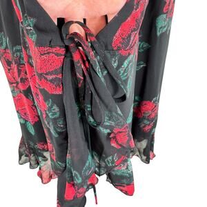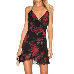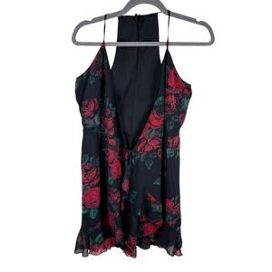 Lovers & Friends Gigi Wrap Mini Dress Rose Print Ruffled V-Neck Lightweight Sz S