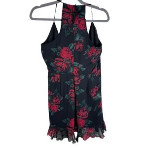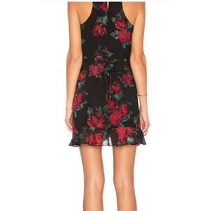 Excellent preowned condition. Gigi wrap rose print ruffled lightweight tie closure mini dress. Ties at back of neck. Polyester/elastane material. Approx. measurements: Shoulder to hem 33", pit to pit 17". Size S (estimation based on measurements, tags do not indicate).