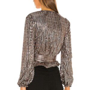 Lovers + Friends Goldie Metallic Sequin Tie Front Top S
