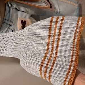 Long Bell sleeved with rust color stripes.