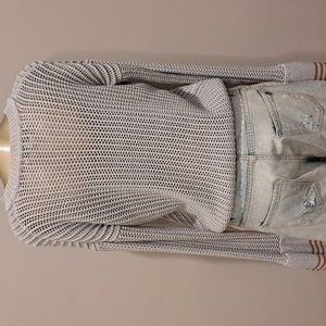 Lovers + Friends Gray Loose Cable Knit Sweater With Bell Sleeves