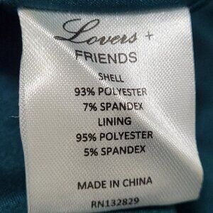 The Lovers + Friends Green Strapless Asymmetric Slit Stretch Midi Dress is a stylish and versatile option for any woman's wardrobe. Made with a stretchy material, this dress is comfortable and easy to wear. The strapless design and asymmetric slit give it a trendy and unique look, perfect for a special occasion or a night out. The pleated accents and midi length add a touch of sophistication. Made in the USA.