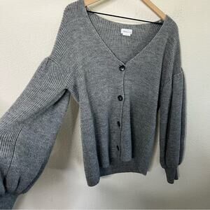 Lovers + Friends Grey Wool Blend Button Front Cardigan Balloon Sleeve Size S