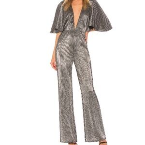 Revolve Lovers + Friends Harper Silver Metallic Jumpsuit