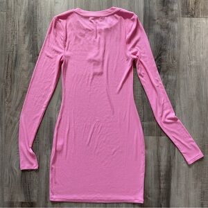 This Lovers + Friends Henry Mini Dress in bubble gum pink is perfect for any casual occasion. Designed with a V-neckline and button closure, this dress accentuates your figure with its bodycon style and short length. The long sleeves make it perfect for cooler summer and fall days, while the cotton blend material with a touch of stretch ensures a comfortable fit.