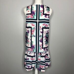 100% polyester, sleeveless, unlined, Shirred drop waist skirt, side seam pockets, mini dress