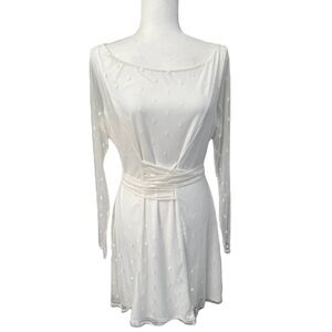 Lovers + Friends Ivory Mesh Dot Overlay Long Sleeve Dress - Size XL