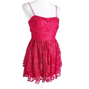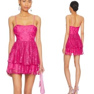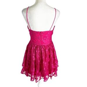 Lovers + Friends Jia Lace Tiered Mini Dress in Electric Pink Floral Size M