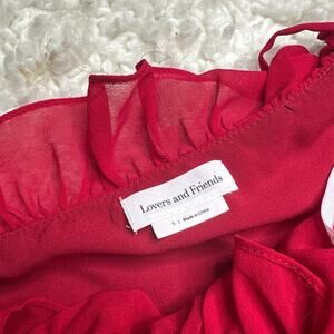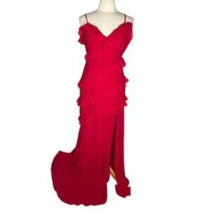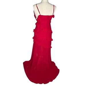 Lovers + Friends Karlie Gown in Red Ruffle Maxi Sheer Tiered Sexy Gown