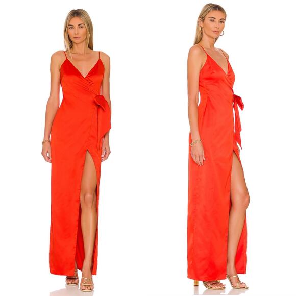 NEW W/ FLAW Lovers & Friends Mackenzie Gown Red Wrap Maxi Dress Sz XL Satin