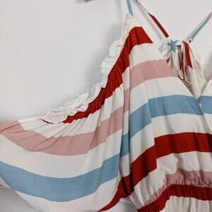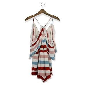 Lovers & Friends Malia Striped Cold Shoulder Ruffle Romper Size M