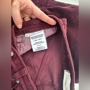 Lovers + Friends Maroon Velvet Skinny Jeans Size 27 NWT