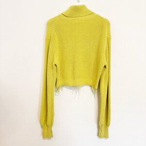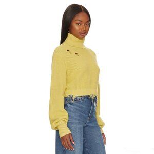 Lovers + Friends Medea Distressed Turtleneck Balloon Sleeve Knit Sweater Medium