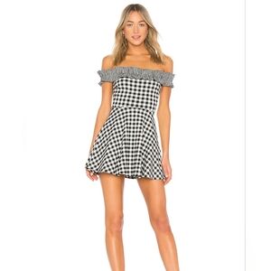 Lovers & Friends NWT Lorrie Dress Gingham Mini Off Shoulder Size XS