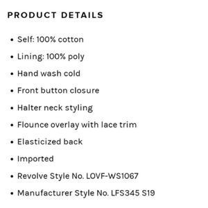 NWT gorgeous Lovers + Friends Marty Halter Top. Sold out on the Revolve website. Comes with two extra. Perfect for summer!!