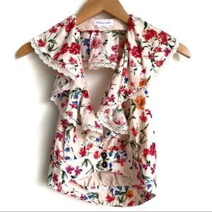 Lovers & Friends NWT Size Medium, Off-White Floral Crop Top, 100% Cotton