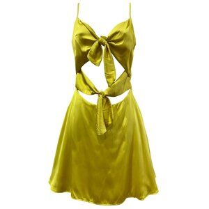 Lovers + Friends Nate Front Tie Cut Out Mini Dress Chartreuse Yellow Size S - Mu