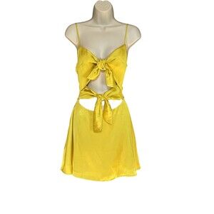 Lovers + Friends Nate Size M Front Tie Cut Out Mini Dress Chartreuse Yellow