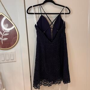 Lovers + Friends Navy Blue Lace Plunging Neckline Skater Dress Medium
