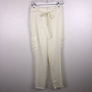 Lovers & Friends Pants Women Small Cargo Trousers Satin Ivory Cream Waist Tie K