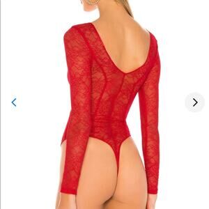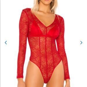 Lovers + Friends Pearson Bodysuit Cherry Red Lace Women’s XS Small NEW