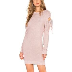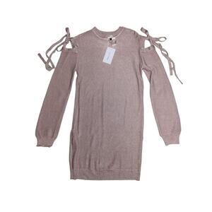 Lovers + Friends Pink Dress Sweater Ezra Tie Metallic Cold Shoulder Mini New XXS