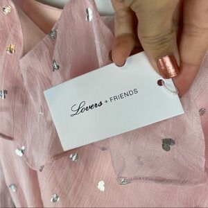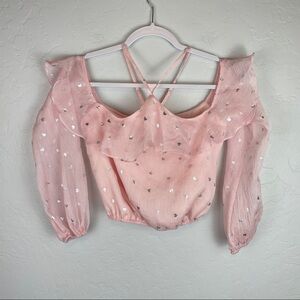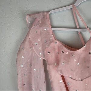 Lovers + Friends Pink Halter Neck Silver Heart Print Cropped Blouse NWT Size XXS
